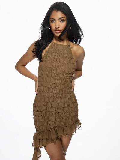 MISSGUIDED Mini-robe moulante à volants et smocks, asymétrique, col licou