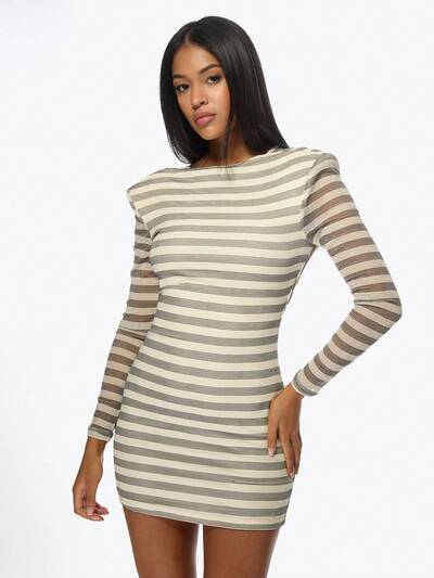 MISSGUIDED Mini-robe moulante à rayures et manches longues