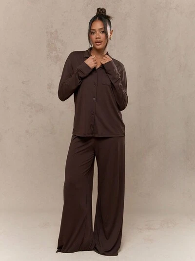 MISSGUIDED Ensemble de pyjama deux pièces avec chemise à manches longues et pantalon large, vêtements d'automne36,22 $US51,75 $US