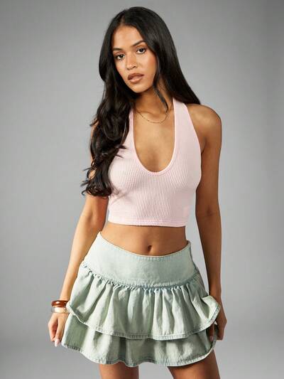 MISSGUIDED Débardeur court côtelé à dos nageur et décolleté plongeant