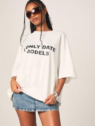 MISSGUIDED T-shirt à imprimé texte surdimensionné