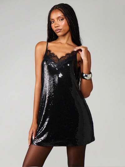 MISSGUIDED Mini-robe à paillettes avec bordure en dentelle-50%