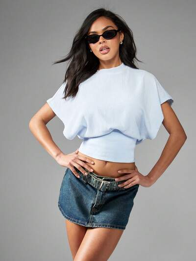 MISSGUIDED Hauts basiques courts texturés à taille cintrée