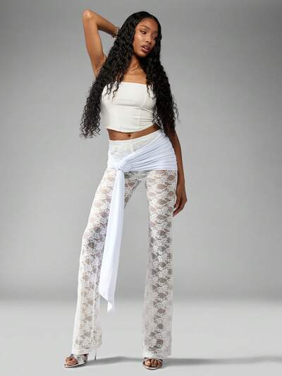 MISSGUIDED Pantalon large en dentelle élégant avec jupe portefeuille
