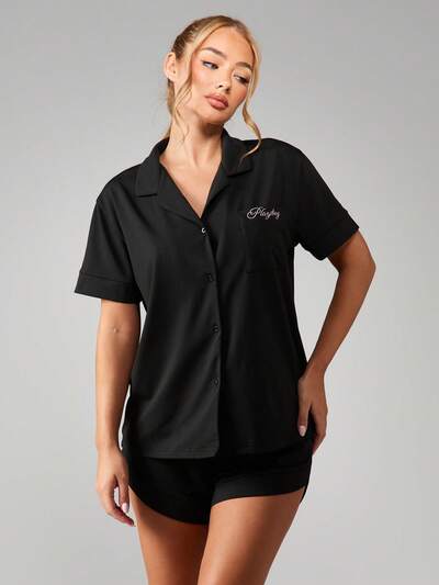 Missguided x Playboy Ensemble chemise noire à boutons et short-50%