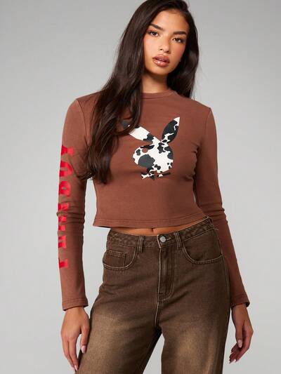 Missguided x Playboy Crop top ajusté à manches longues avec imprimé vache-40%