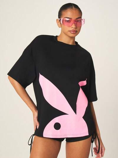 Missguided x Playboy T-shirt oversize à col rond imprimé graphique-30%
