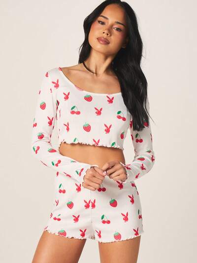 Missguided x Playboy Ensemble crop top et short à imprimé lapin