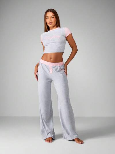 Missguided x Playboy Haut court à manches contrastées avec pantalon large-40%