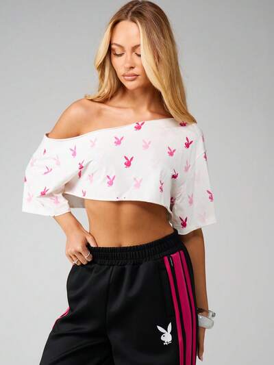 Missguided x Playboy Top court à épaules dénudées avec imprimé-50%