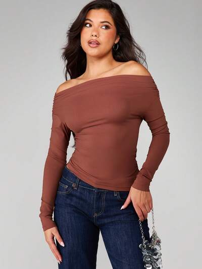 MISSGUIDED Top à épaules dénudées et manches longues froncées-50%