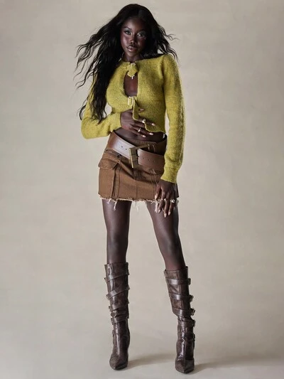 AiiRZ Jupe longue maxi en tricot chiné, texturé côtelé, tenue d'intérieur pour l'automne et l'hiver