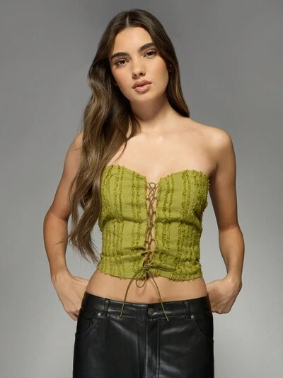 MISSGUIDED Bustier court texturé et ajusté avec détail lacé, idéal pour Noël