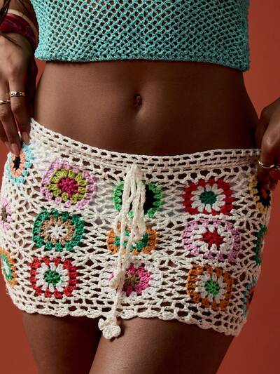 AiiRZ Jupe longue de plage en crochet, cache-maillot, vêtement de villégiature, motif en nid d'abeille, jupe longue d'été pour la plage, tenue de piscine, cache-maillot de bain