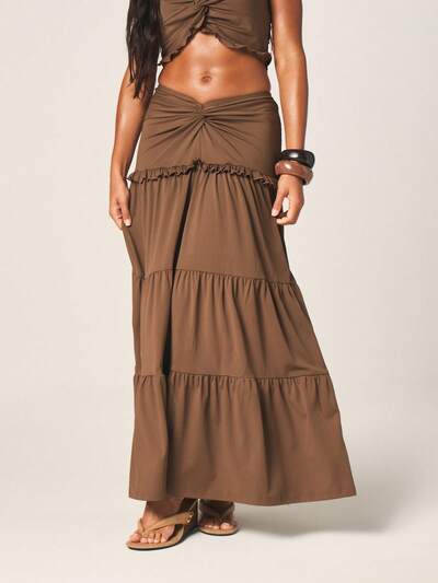 MISSGUIDED Jupe longue à taille froncée et à volants superposés