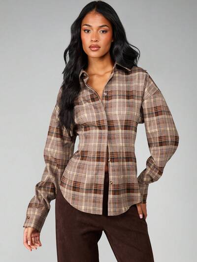 MISSGUIDED Camicetta con colletto scozzese e vita stretta