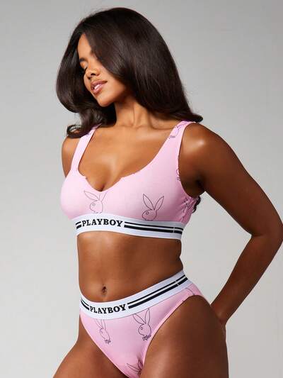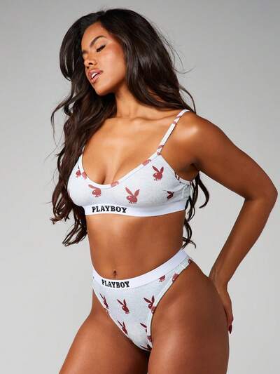 Missguided x Playboy Completo reggiseno con perizoma e stampa coniglietto