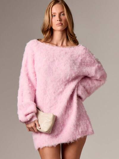 AiiRZ Abito maglione invernale morbido e avvolgente con spalle scoperte e maniche lunghe, mini abito in maglia caldo e confortevole-50%