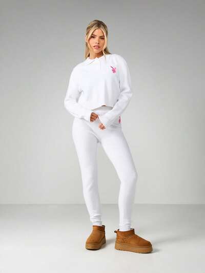 Missguided x Playboy Completo maglione corto lavorato a maglia con leggings svasati