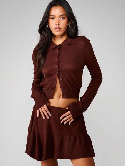 MISSGUIDED Coordinato lavorato a maglia con cardigan con bottoni e gonna plissettata