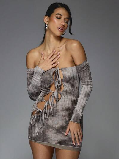 MISSGUIDED Miniabito in maglia con spalle scoperte e lacci laterali