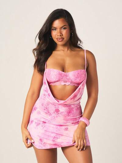 MISSGUIDED Mini abito rosa tie-dye con ritagli