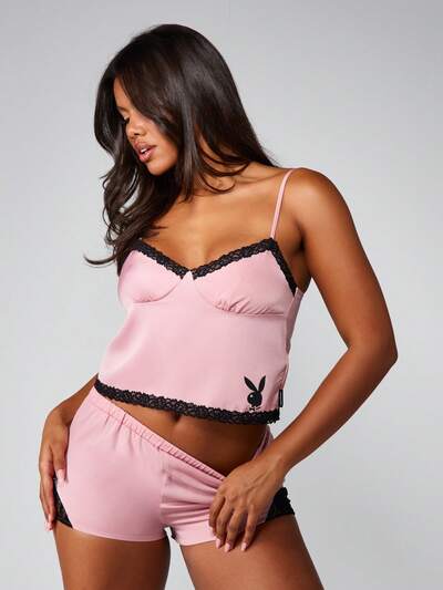 Missguided x Playboy Completo canotta in raso con pantaloncini coordinati