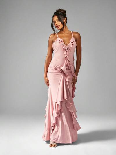 MISSGUIDED Elegante abito lungo in raso con volant a cascata