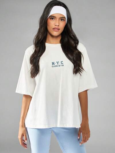 MISSGUIDED T-shirt oversize in stile vintage con stampa di New York e numero dello studente