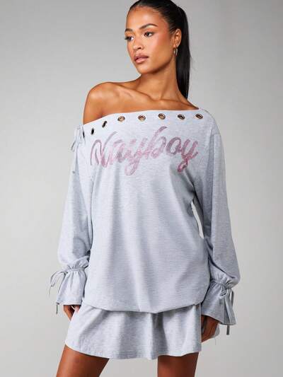 Missguided x Playboy Abito oversize con cappuccio e testo sul retro con strass-40%