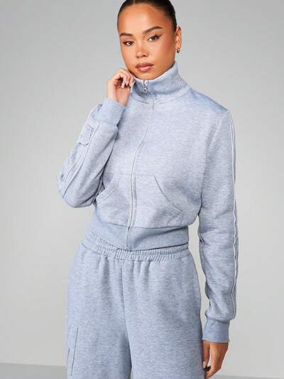 MISSGUIDED Felpa con zip intera e strisce laterali bianche-35%