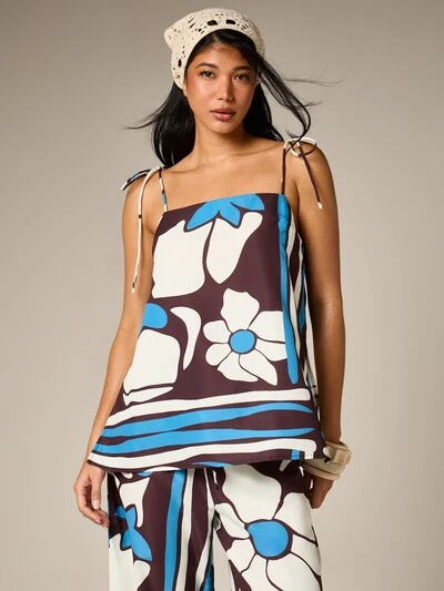 AiiRZ Top canottiera con stampa floreale retrò, lacci sulle spalle, con motivo floreale astratto e dettagli a righe sul bordo, adatto per l'estate