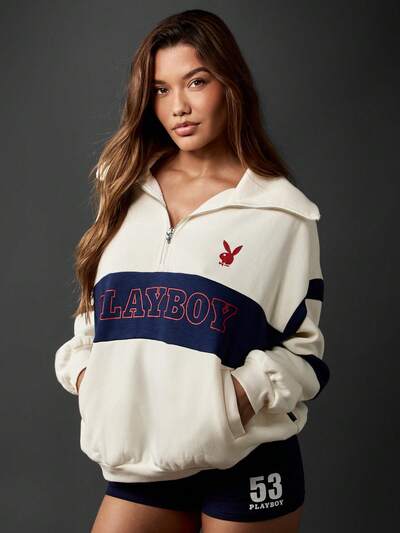 Missguided x Playboy Felpa con mezza zip in stile sportivo retrò