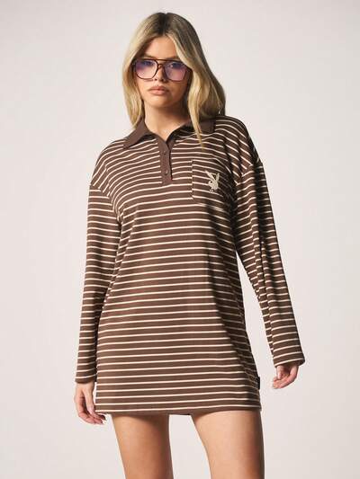 Missguided x Playboy Mini abito polo a righe con maniche lunghe