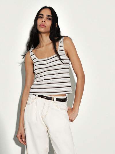 MISSGUIDED Canotta corta a righe a doppio strato con finiture blu navy