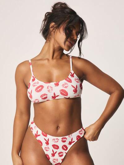 Missguided x Playboy Completo reggiseno con stampa logo coniglietto multiplo e slip brasiliano a vita alta18,11 USD21,31 USD