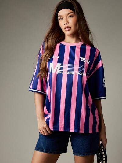 MISSGUIDED Maglietta da football a righe oversize con numero