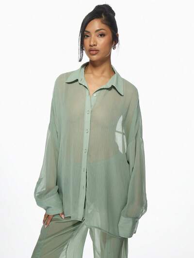 MISSGUIDED Camicetta oversize trasparente con bottoni, leggera, a maniche lunghe, con colletto, per Natale