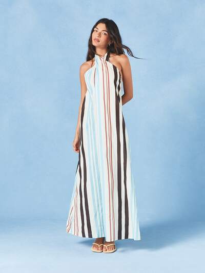 AiiRZ Abito lungo da donna con scollo a canottiera e righe, dalla silhouette ampia e fluida, perfetto per l'estate, le vacanze al mare, le occasioni casual-15%