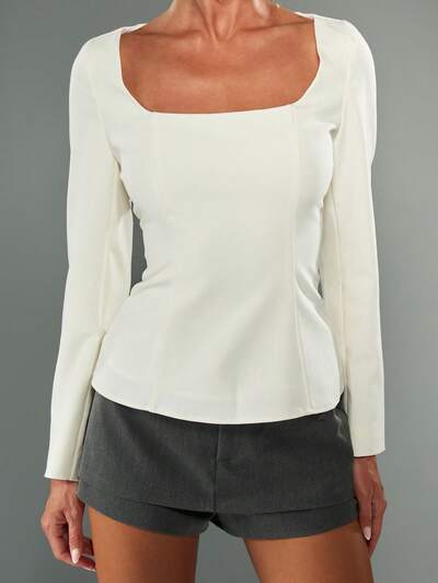 MISSGUIDED Camicetta aderente con scollo quadrato e maniche lunghe-50%