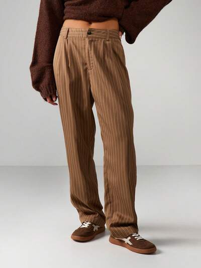 KIZN Pantaloni sartoriali a vita bassa con gamba ampia, pieghe e chiusura con bottone, con tasche laterali