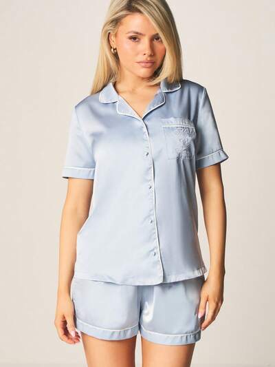 MISSGUIDED Completo camicia e pantaloncini in raso con bottoni