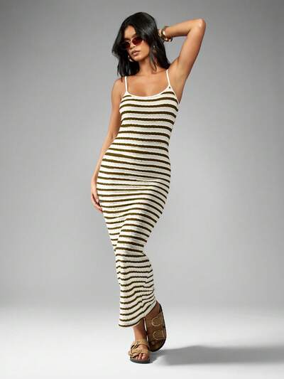 SUMWON WOMEN Abito da sera lungo in maglia a trama con spalline, abito aderente senza maniche per occasioni, abito estivo/autunnale da festa, vestito da designer aderente per occasioni speciali