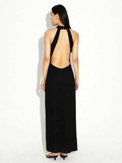 KSTM Abito da sera lungo senza schienale con collo a canottiera, spacco frontale, senza maniche, per occasioni formali e feste