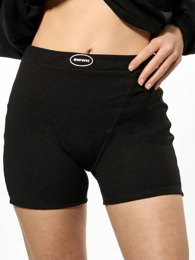 SUMWON WOMEN Pantaloncini a vita alta in maglia a nido d'ape per donne, con texture a costine elastiche, mini hot pants estivi per spiaggia e festival, abbigliamento sportivo