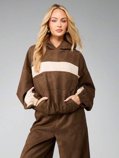 MISSGUIDED Felpa oversize con cappuccio e striscia a contrasto