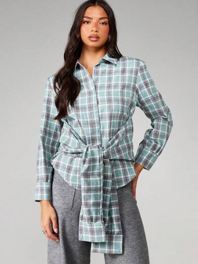 MISSGUIDED Camicia a quadri a maniche lunghe con nodo sul davanti