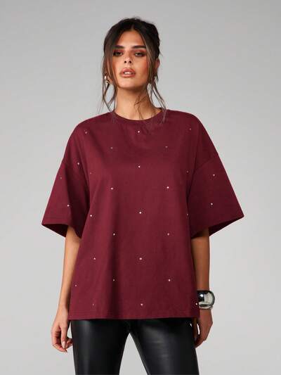 MISSGUIDED T-shirt oversize con borchie e scollo tondo