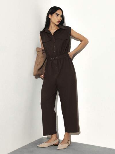 KSTM Tuta senza maniche con tasche sul petto e vita con cintura, per uso casual quotidiano-40%