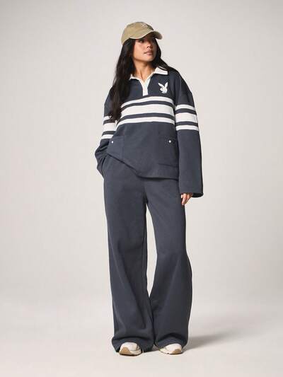 Missguided x Playboy Completo con felpa polo a righe e pantaloni jogger a gamba larga-30%